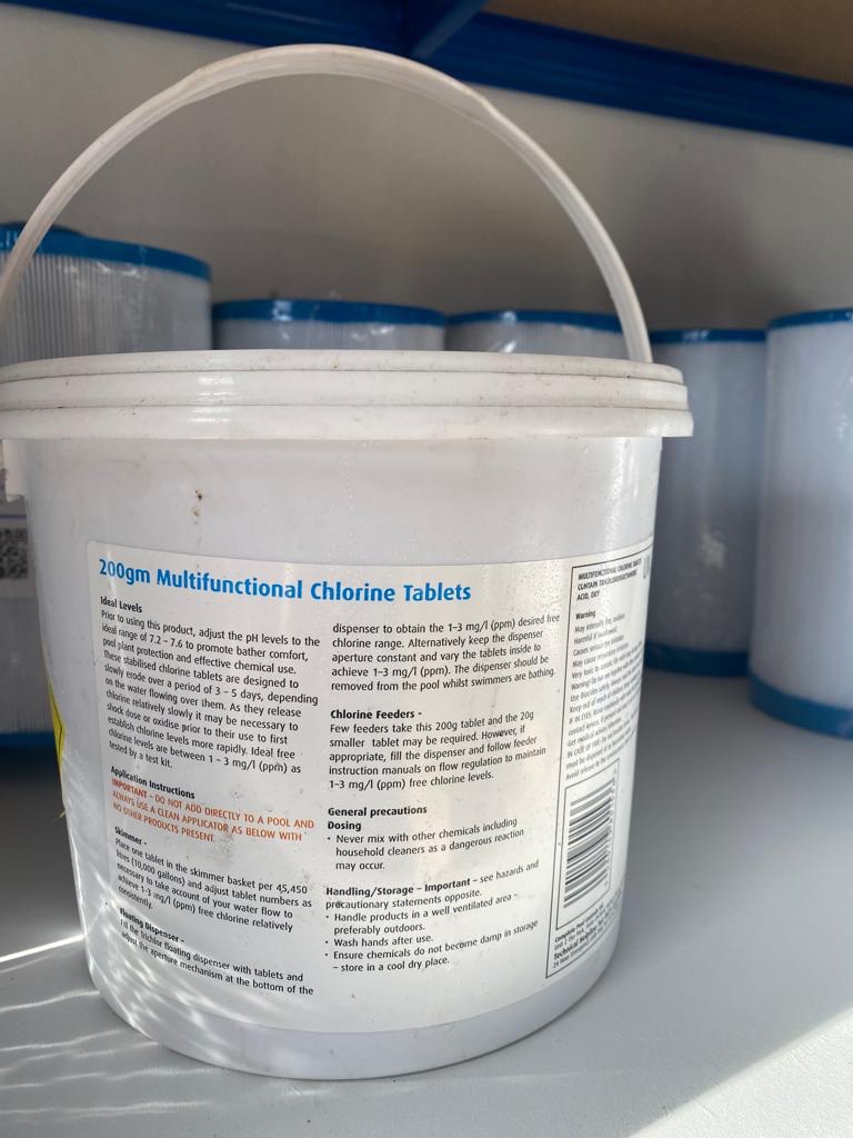 200g Stabilised Chlorine Tablets are a popular product for providing longer term disinfection in pool water. Apply via the skimmer basket, or a floating dispenser to provide water safety and clarity over a period of 3 – 4 days.