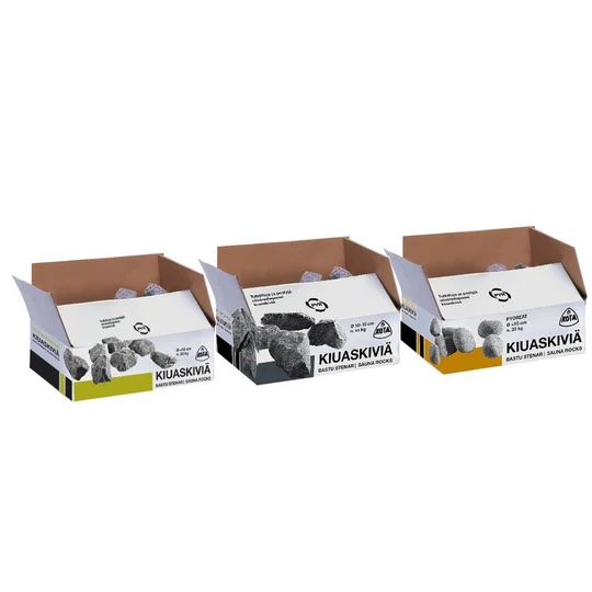 These traditional, high quality sauna stones are noted for their durability and excellent soft steam created when water is applied. These stones are can be fitted in any sauna heater. They are available in two sizes: 5-10 cm and 10-15 cm. In the case that heaters require both grades, larger stones should be used at the base with smaller grade stones added to the top of the heater. Each box comes with approximately 20 kg of premium Finnish olivine diabase sauna stones.