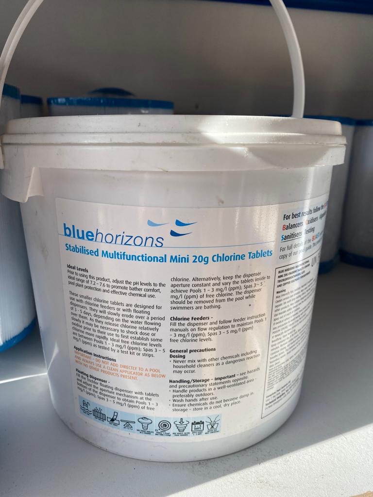 Small Chlorine Tablets offer a convenient method of maintaining water safety in your swimming pool. These smaller chlorine tablets are designed for use with chlorine feeders (Chlorinator) or with floating dispensers. As the tablets are small it is easy to vary the number to achieve the required sanitiser level. They will slowly erode over a period of 3 – 5 days, depending on the water flowing over them. As they release chlorine relatively slowly it may be necessary to shock dose or oxidise prior to their use to first establish some chlorine more rapidly.